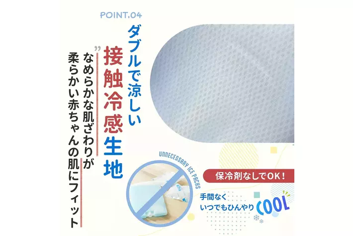 そこで、クールベイビーは送風機能に加え、接触冷感シートのWひんやり機能を搭載。
