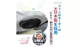 COOL BABYの送風ファンのモーターは日本製を採用!乳幼児が使用するため、安全性には徹底的にこだわり高品質を追い求めました。