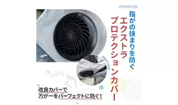 また、送風ファンにはエクストラプロテクションカバーで2重の指侵入防止構造となっており、小さな赤ちゃんの指が絶対に入らないような工夫が施されています。