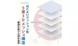 通常の生地では熱がこもりやすかったり、ムレたりとする場合がありますが、接触冷感素材にすることで触った瞬間からヒンヤリ冷たく感じる素材となっています。冷感ジェル等を取り付ける必要もなく、よりシンプルに機能的な設計をしました。5層になった3Dメッシュ素材は触り心地も滑らかで、冷感素材を感じさせない仕上がりになっています。