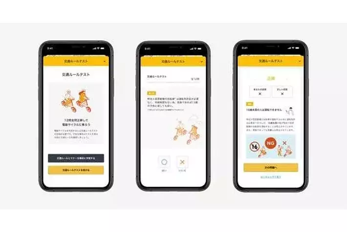 ご利用前の準備として、交通ルールテストの全問正解と16歳以上であることの確認が必要です。いずれも「HELLO CYCLING」アプリから実施いただけます。