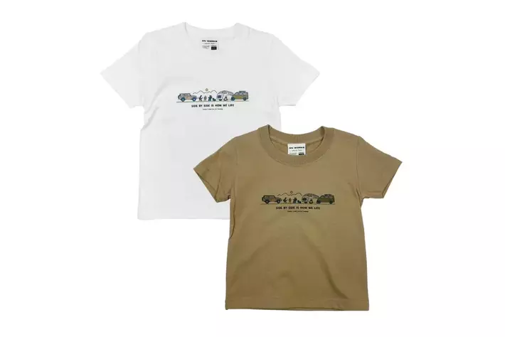 ハイエースとランドクルーザーのイラストが入ったシンプルで遊び心のあるウェアをハイクオリティの材質で仕立てております。