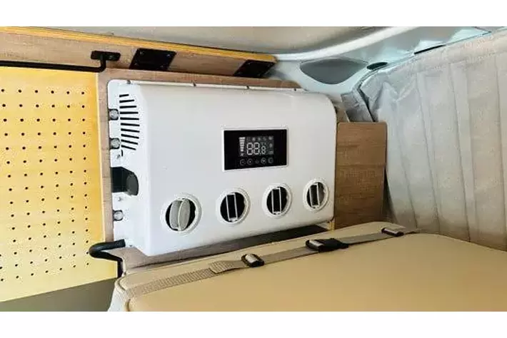 12Vクーラー取付、12Vクーラー専用外部電源口&ポータブルバッテリー電源口(コンバーター含む)、断熱加工、リチウムイオンバッテリー(100Ah×2個)、外部電源装置(20Aチャージャー)、100Vコンセント、※外部電源orバッテリー切替で使用