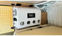 12Vクーラー取付、12Vクーラー専用外部電源口&ポータブルバッテリー電源口(コンバーター含む)、断熱加工、リチウムイオンバッテリー(100Ah×2個)、外部電源装置(20Aチャージャー)、100Vコンセント、※外部電源orバッテリー切替で使用