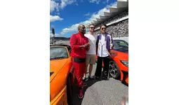 映画のレプリカ車両で登場 写真:「タイリース・ギブソン」(役名:ローマン),「Cody Walker」,「サン・カン」(役名:ハン)
