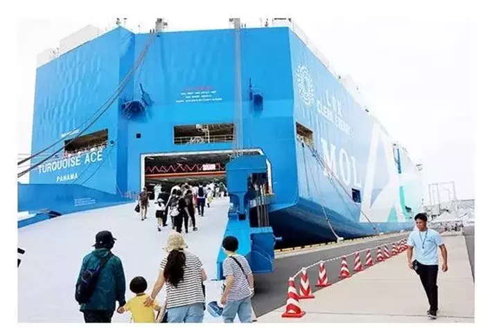 株式会社商船三井(社長:橋本剛、本社:東京都港区、以下「商船三井」)は、「海と日本プロジェクト」の一環として、一般社団法人日本船主協会(会長:明珍幸一、本部:東京都千代田区、以下「日本船主協会」)と協力し、7月15日の海の日に、次世代を担う子供たちに船と海を身近に感じてもらうため、LNG燃料自動車船BLUEシリーズの2隻目となる「TURQUOISE ACE(読み:ターコイズ エース)」(註1)の船内見学会を開催しました。