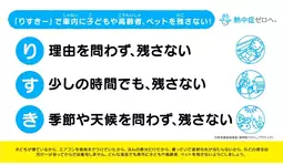 (https://www.netsuzero.jp/learning/le21)を、本プロジェクト公式サイトで2024年 7 月 17 日 (水)に公開します。またJAF監修のもと、車内置き去りの注意喚起を促す標語「りすきー」を新たに 発表します。