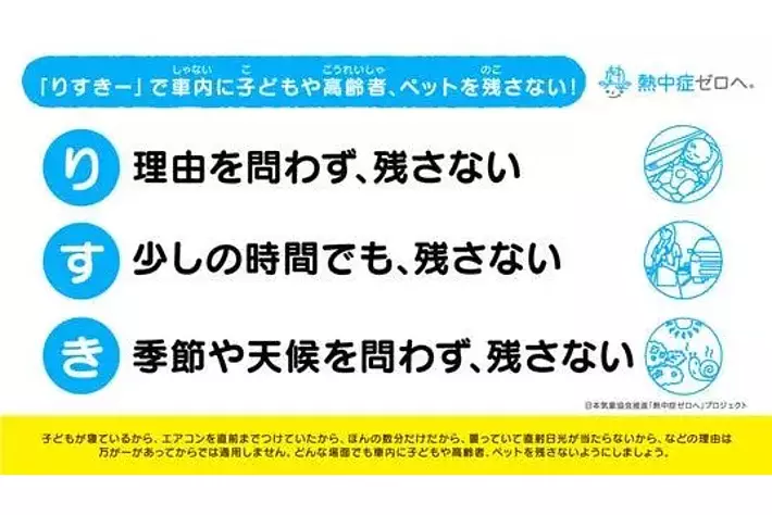 ~JAF監修で車内置き去りの注意喚起を促す標語「りすきー」を新たに発表~