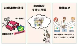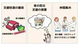 車の被災の影響の周知や防止のための情報発信をプロジェクトページ上で行い、車の防災について啓蒙をしてまいります。それにより、災害で車を被災させないための意識を根付かせていけたらと考えています。プロジェクト期間中に啓蒙につながるオンラインイベントを実施する予定です。