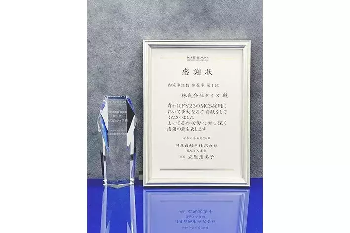 「タイズさんは、関東に進出された初年度ながら日産自動車のR&Dにおいて2桁の採用に尽力を頂き、大変感謝をしております。