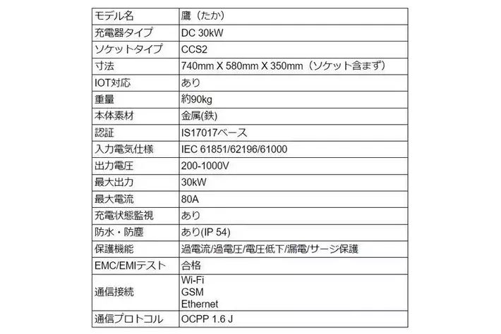 「TAKA(鷹)」:EV四輪の急速充電ニーズに対応した新型30kW急速充電器