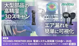 アンリツ株式会社(社長 濱田 宏一)は、CREAFORM社のハンドヘルド型3Dスキャナー『HandySCAN 3D|MAX Series』及びTeledyne FLIR社の産業用音響カメラ『FLIR Si124』を、2024年7月24日から7月26日まで東京ビッグサイトにて開催される『TECHNO-FRONTIER 2024 電源システム技術展』の株式会社高砂製作所のブースで、実演を交えて出展します。また、『フィールドマスタ プロ(TM) MS2090A(ハンドヘルド・リアルタイム スペクトラムアナライザ)』もパネル展示します。