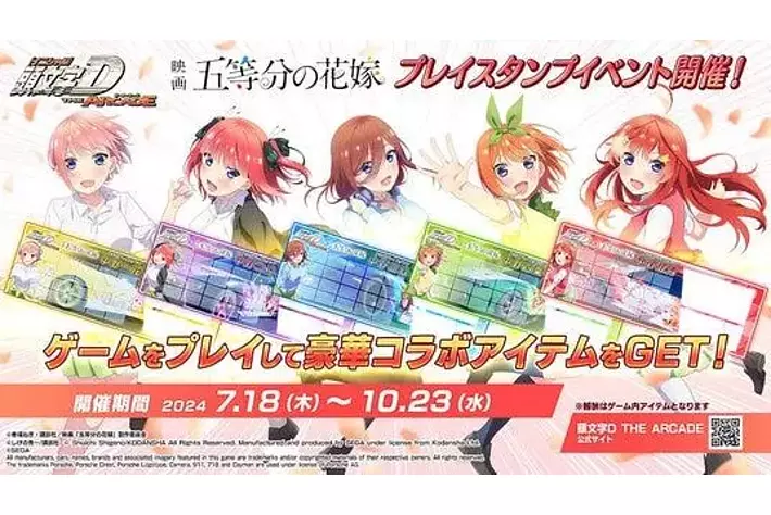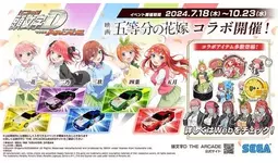 株式会社セガ フェイブ(本社:東京都品川区、社長:杉野行雄、以下セガ フェイブ)は、アミューズメント施設向けタイトル『頭文字D THE ARCADE(以下、頭文字DAC)』におきまして、2024年7月18日(木)より『五等分の花嫁』とのコラボレーションイベントを開催中です。