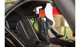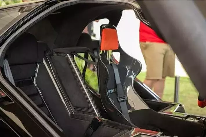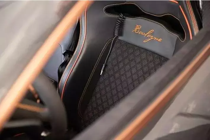 この電動ハイパーカーは、大胆なデザインとスポーティなキャラクターを兼ね備え、シートとドアパネルの中央には黒のパンチングが施されたALCANTARA(R)のオレンジ色の裏地と、ステアリングホイールとダッシュボードに黒のALCANTARA(R)が使用され、独自性と高品質を際立たせています。