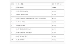 ・期間内に、バイク未来総研独自の規定台数に達する流通があるバイクを対象とする