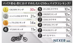 株式会社NEXERは、バイクリサイクルジャパンと共同で「バイク初心者におすすめしたい250ccバイク」に関するアンケートを実施し、結果をサイト内にて公開したので紹介します。