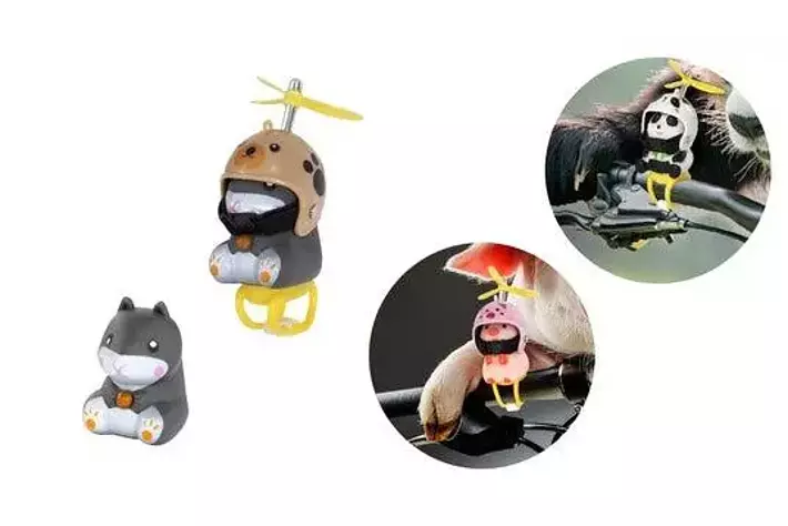 風を受けるとプロペラが回る!ヘルメットを被った、かわいいアニマル達とツーリング?