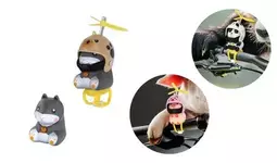 風を受けるとプロペラが回る!ヘルメットを被った、かわいいアニマル達とツーリング?