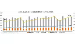 主要12カ国とノルウェー、スウェーデン、フィンランドの北欧3カ国(計15カ国)における6月の電気自動車販売台数は131.2万台だった。前年同月比で19.6%の増加となり、前月比では13.2%増だった。6月の電気自動車シェアは24.4%で、前月から1.7ポイント増加した。販売台数・シェアともに昨年末に次ぐ過去2番目に高い数字となった。2024年上半期の電気自動車累計販売台数は、前年同期比23.0%増の614.8万台で、自動車販売台数全体に占めるシェアは20.6%となった。