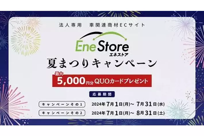 ナルネットコミュニケーションズは、多くの自動車整備工場の皆さまにEneStoreをご利用いただくため、7月1日(月)より、EneStoreの夏祭りキャンペーンを開催中です。条件(詳細以下)をクリアする全国の自動車整備工場を対象に、最大5,000円分のQUOカードをプレゼントします。