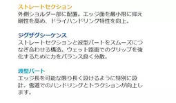 ショルダー・ブロックにある新しい 3 レイヤー・サイプは、ストレート、ジグザグ、波型の