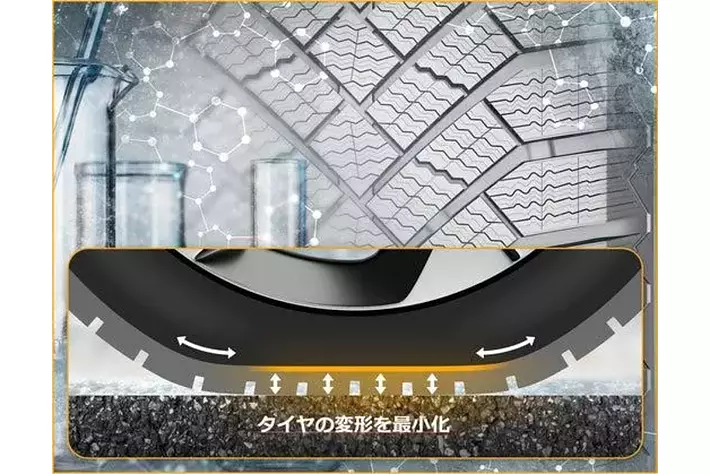 新設計のパターンとコンパウンドの組み合わせにより、走行中のタイヤ内部の変形を軽減。