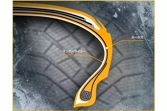エネルギー損失を最小限に抑制し、転がり抵抗を低減します。また、カーカスとインナーラ