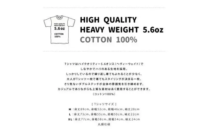 スタンダードかつシンプルなTシャツは大人がすっきりと着こなせるよう設計されており、5.6ozと厚手のため耐久性も高い仕上がりとなっています。