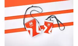 TOM'Sのロゴマークと、永久象徴ナンバーである「36」、車体に施されているオレンジと白のデザインを再現したデザインが特徴です。レース観戦に来るファンは必ず持っておきたいアイテムとなっています。