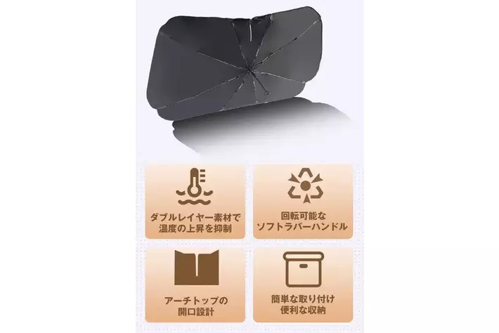 このサンシェードはユニークなデザインと全方位回転機能で、愛車をしっかり保護します。