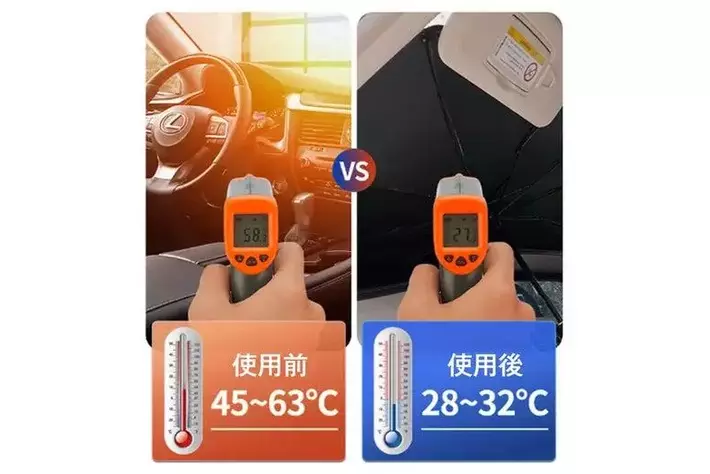 暑い夏の日、車内の温度上昇、内装の劣化、紫外線のダメージが心配です。しかし、このサンシェードはチタンシルバーのドット設計で効率的に温度の上昇を抑制します!