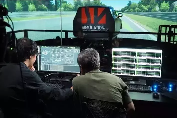 <コントロールルームの様子>車内のテストドライバーと対話をしながら、ドライバーが体感する走行シナリオ(路面・天候・交通流)の変更や車両の特性の変更や調整が可能
