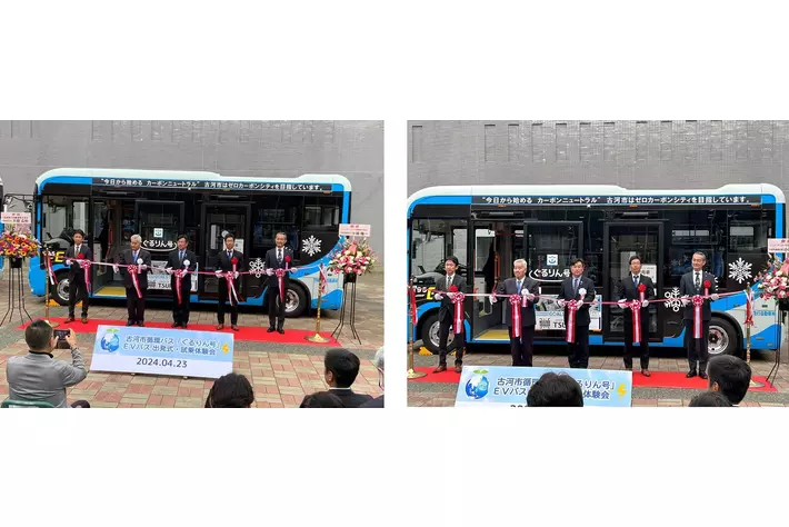 株式会社 EV モーターズ・ジャパン (本社:福岡県北九州市、代表:佐藤 裕之) はこの度、古河市役所様(古河市長:針谷 力)へ小型コミュニティEVバスを2台納車させていただき、2024年4月23日に出発式及び試乗体験会(主催:古河市役所様)が執り行われました。