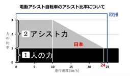 - 11km/h以上になると徐々にアシスト比率を落としていき24km/hで完全にアシストが0になる