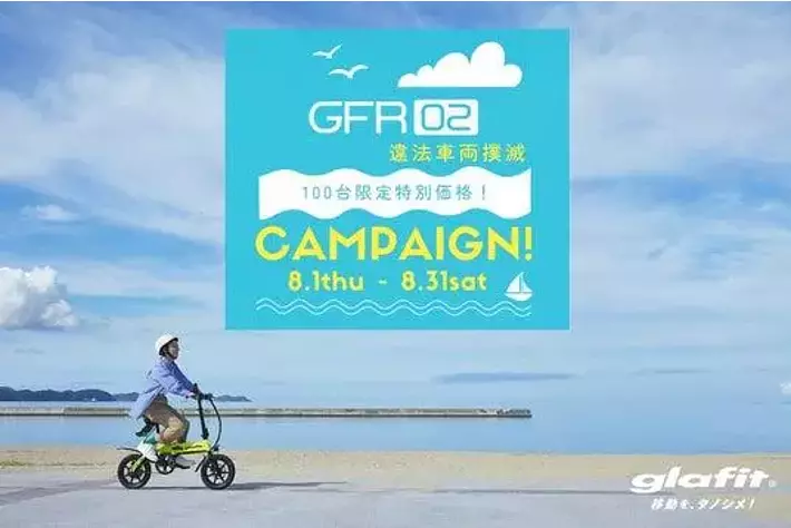 電動パーソナルモビリティの開発から販売までワンストップで手掛けるglafit株式会社(読み:グラフィット、本社:和歌山県和歌山市、代表取締役社長CEO:鳴海 禎造、以下「glafit」)は、glafit公式オンラインショップにて8月1日(木)から8月31日(土)までの期間中、「電動バイクGFR-02」を100台限定で198,000円~の特別価格で販売することをお知らせいたします。