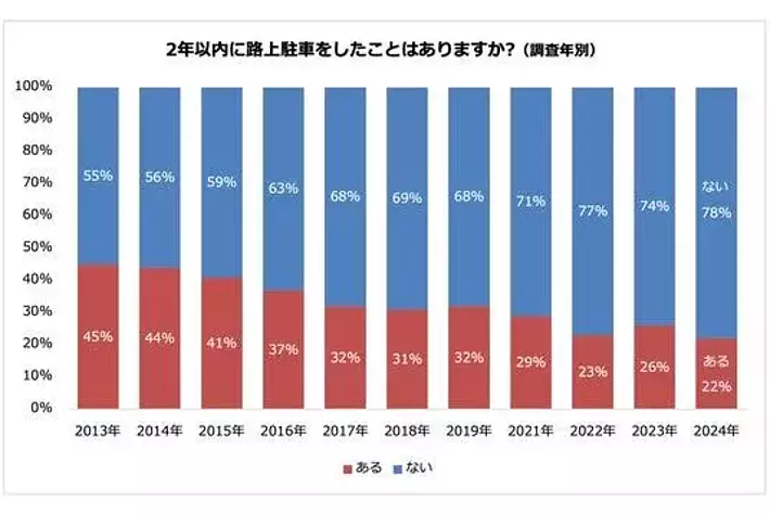 ~2年以内の路上駐車の経験、「ない」の回答比率が過去最高に~