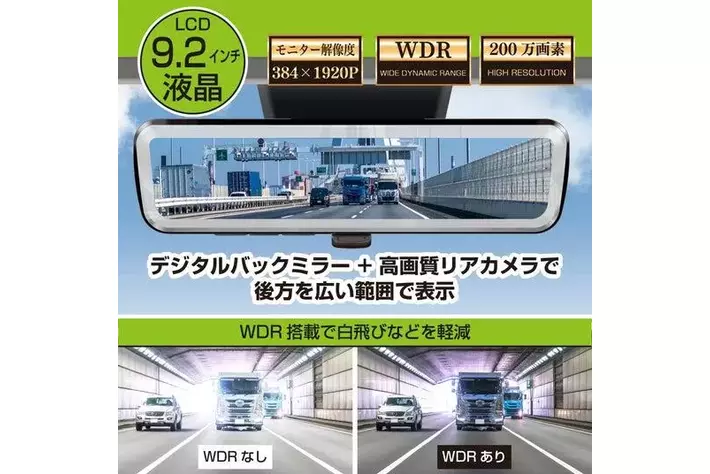 ・ミラー解像度:200万画素、輝度:500cd/平方メートル 、WDR対応、フレームレート:60fpsで工学式ミラーとしても使用可能
