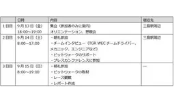 FIA 世界耐久選手権 以下 WEC)に参戦する TOYOTA GAZOO Racing(以下 TGR)は、こどもの職業・社会体験施設「キッザニア」の企画・運営を行う KCJ GROUP 株式会社(以下 KCJ GROUP)による監修のもと、2024 年シーズン WEC 富士 6 時間耐久レースにおいて、中学生を対象に、キッザニアの街を飛び出して実社会の仕事を体験できるプログラム「Out of KidZania TOYOTA GAZOO Racing~レーシングチーム広報スタッフの仕事~」を、2024年9月13日(金)から9月15日(日)まで(※)開催します。つきましては、8月2日(金)から参加受付を開始します。