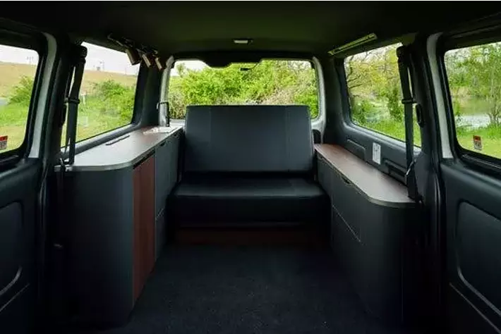 このキットはキャンピングカーの装備を備えつつ、通常の買い物やレジャーに荷室を広く使えることが特徴で、さらに車体の改造を施していないため車体のメンテナンスは一般の