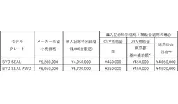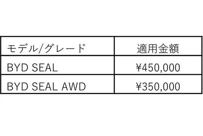 国のCEV補助金はBYD SEALが45万円、BYD SEAL AWDが35万円に決定