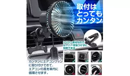 ファンの向きを変えて広範囲に送風することで、車のエアコン効率を高めます。暖房にも使え一年中使えます。