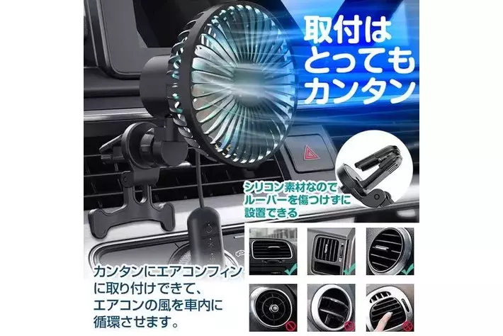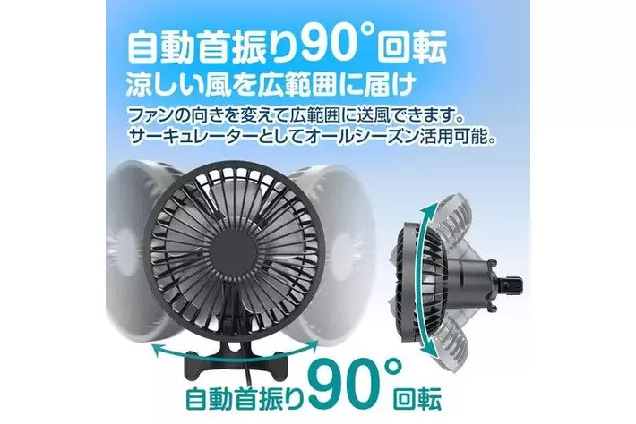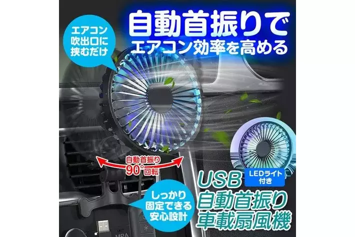 首振り機能付きで、広範囲にカーエアコンの涼しい風を届ける!