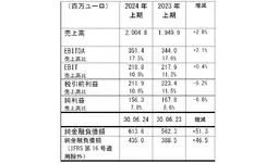 ・ 売上高 2,004.8 百万ユーロ、2023年上期比2.8%増(前年同時期の為替レート基準で3.3%増)