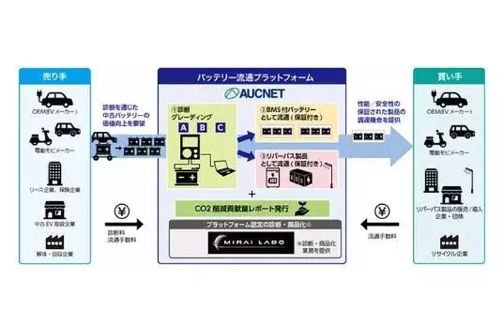 MIRAI-LABOが劣化診断、BMS付バッテリーおよびリパーパス製品の開発および評価を行い、オークネットがプラットフォームの開発・運営、顧客開拓等を担います。