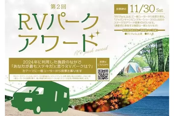 2024年に利用した施設の中で「あなたが最もステキだと思うRVパークは?」をテーマに、一般ユーザーの皆様から投票受付中!(投票期限は11月30日(土)まで)