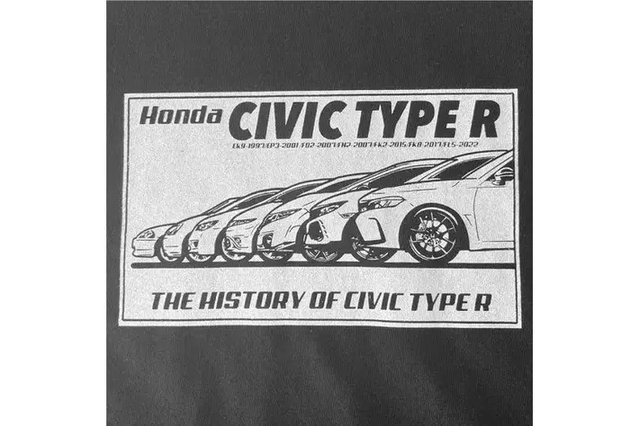 大人気の歴代Honda シビックの横顔が並ぶ遊び心たっぷりのデザインで、シンプルかつスタイリッシュな雰囲気を楽しめる一枚になっている。