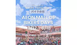 株式会社バイカーズパラダイスは、昨年に引き続き、バイクの日(8月19日)にちなんだイベント「AEON MALL DE BIKERS DAYS」を8月17日、18日にイオンモール豊川店で開催します。