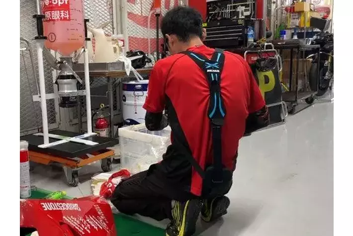 【メカニック担当者】オートバイのメンテナンスは同じ姿勢で長い時間作業する必要が有りますが、マッスルスーツのおかげで腰への負担が軽減され助かりました。
