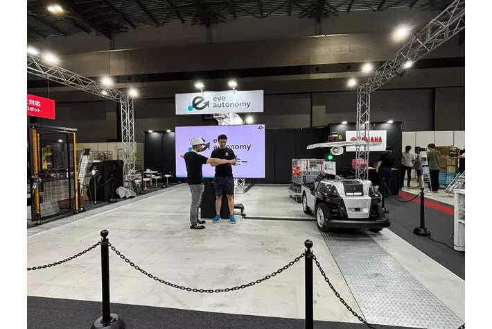 株式会社eve autonomy(静岡県磐田市、代表取締役:星野 亮介、以下「eve autonomy」)は、7月4 日(木)から 7月 6日(土)まで、Aichi Sky Expo(愛知県国際展示場)で開催された産業用ロボット・自動化システムの専門展「ロボットテクノロジージャパン2024」(主催:株式会社ニュースダイジェスト社)のヤマハ発動機ブース内において、自動運転技術を活用した屋外対応の無軌道型自動搬送車両「eve auto(R)」の実機によるデモンストレーションをお披露目いたしました。ブース内では1時間に1回プレゼンを実施し、eve auto(R)の特徴や導入事例などを分かりやすくご紹介させていただきました。