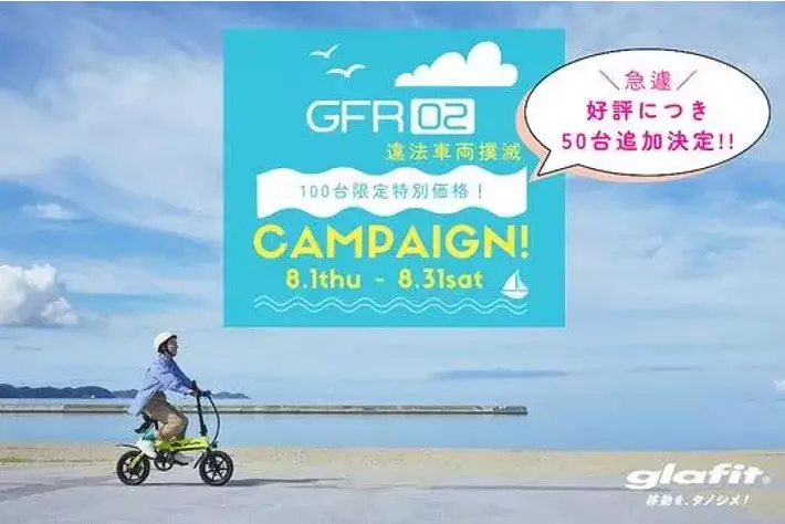 電動パーソナルモビリティの開発から販売までワンストップで手掛けるglafit株式会社(読み:グラフィット、本社:和歌山県和歌山市、代表取締役社長CEO:鳴海 禎造、以下、glafit )は、glafit公式オンラインショップにて8月1日(木)から「電動バイクGFR-02」を100台限定で198,000円~の特別価格で販売を開始いたしましたが、好評につき17日に予定販売数に達しました。その後お問い合わせを多数いただいていることから、急遽50台を追加販売することにいたしましたのでお知らせいたします。
